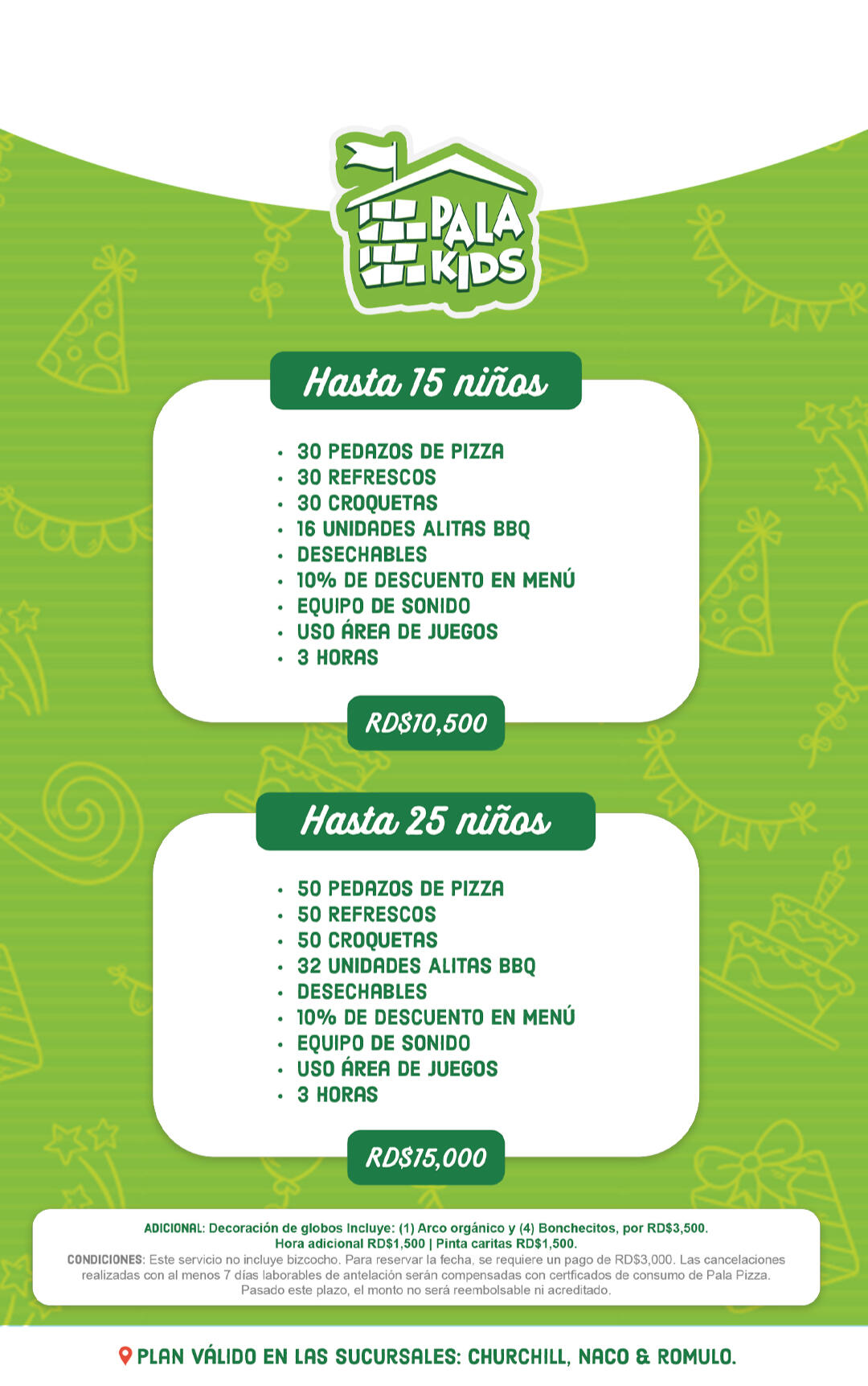 Paquetes flexibles para 15, 20 o 30 niños.Todo incluido
